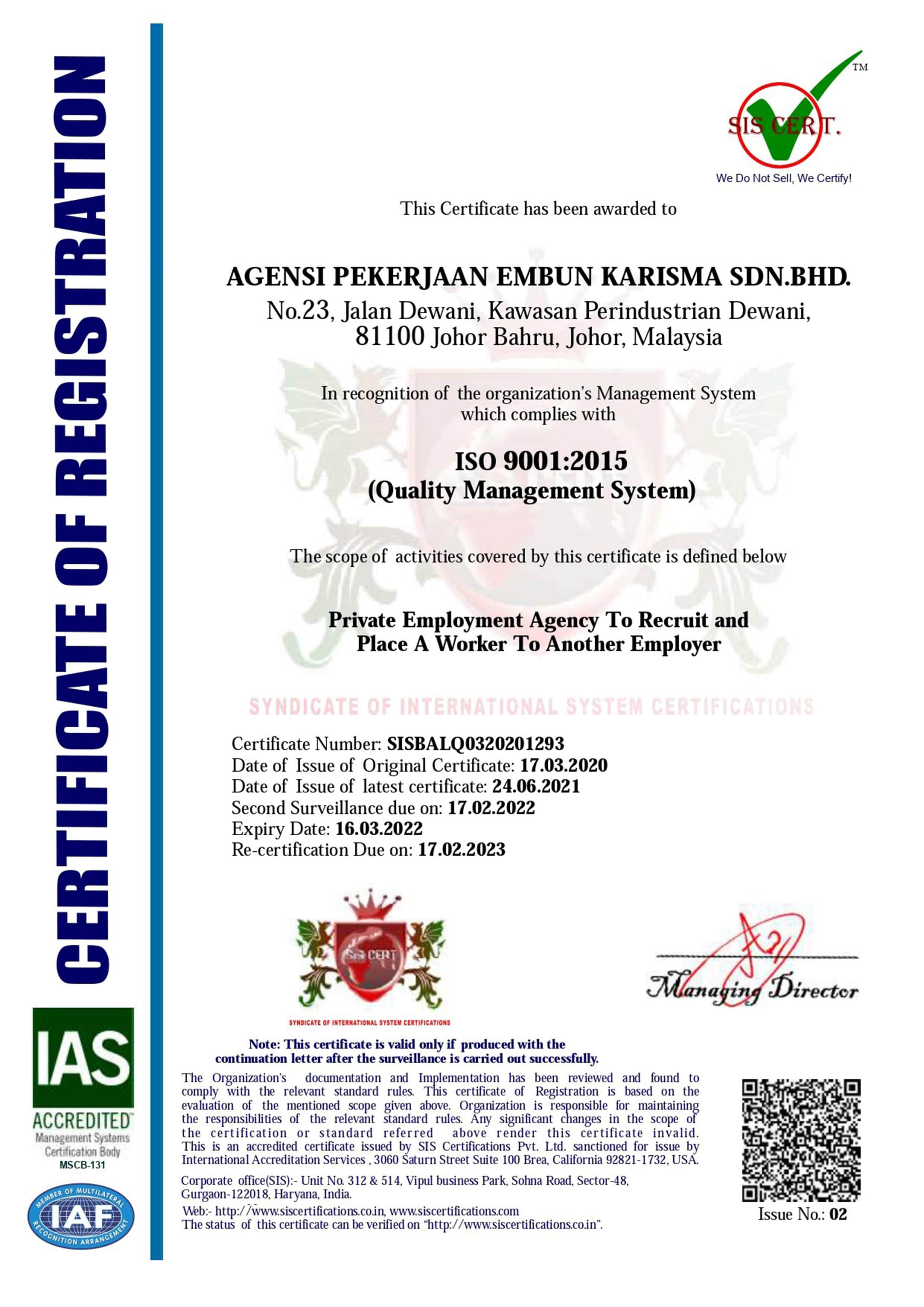 81100 Johor Bahru, Johor.